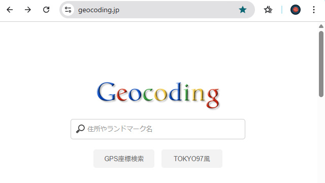 住所やランドマーク名を入力すると、経度緯度座標に変換してくれるサービスです。