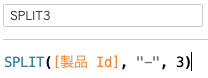 製品Idをハイフンで区切り左から3目の文字列を取り出す計算式を作成します。