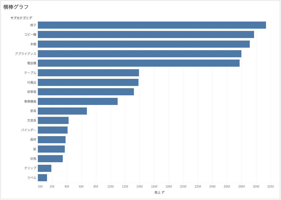 あっという間にグラフができました! - 見た目を整えるため、縦軸のラベルにある並べ替えアイコンをクリックして売上順に表示し直します。