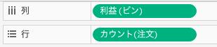 - 次にデータペインの「注文(カウント)」を選択して、行にドラッグ&ドロップします。