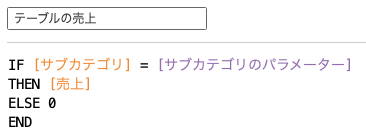 サブカテゴリが「テーブル」であれば売上、それ以外の場合は0を返す式を定義して、「テーブルの売上」という名称で保存します。